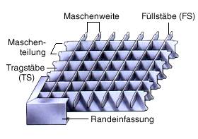 Das erste Maß der Maschenweite ( T ) zeigt den Tragstababstand an.