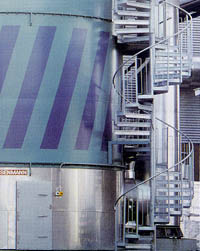 Als Beläge für Stufen und Podeste werden gütegeprüfte Schweißpress-Gitterroste nach RAL-GZ 638 verwendet.